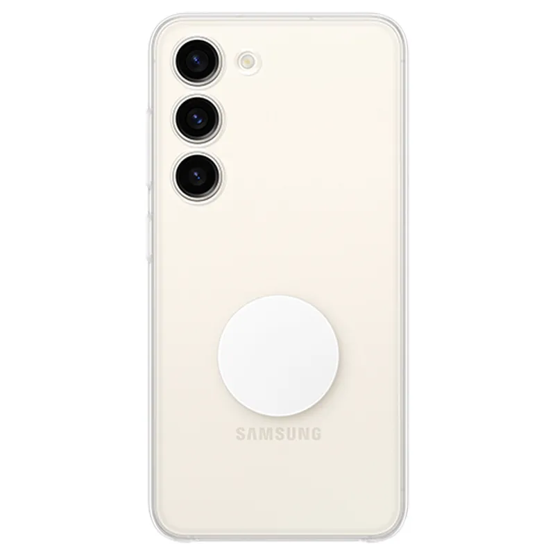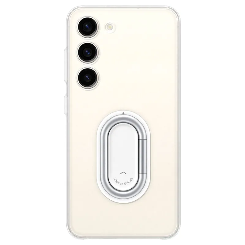 Originele Samsung Galaxy S23 Plus 5G Clear Gadget Hoesje EF-XS916Krijg een veiligere grip voor je Samsung Galaxy S23 Plus 5G met de originele Clear Gadget-hoes. Terwijl de ringhouder ervoor zorgt dat je je telefoon veilig kunt vasthouden, kun je hem losmaken en een standaard bevestigen voor handsfree multimedia kijken wanneer dat nodig is. Het transparante ontwerp van deze multifunctionele hoes verbergt de originele kleur van de Samsung Galaxy S23 5G niet.